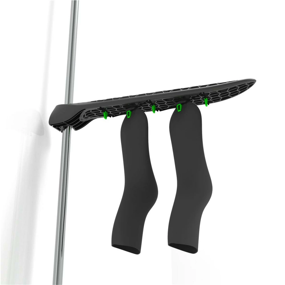 Der neue Exit X Rail Wetgear Hanger ist dein perfektes Gadget zum trocken deines Neoprenanzuges. Dank der innovativen Befestigungstechnik lässt sich der Hanger einfach an deine Duschstange hängen. Er muss dazu nicht verschraubt werden. Er ist für alle Stangen zwischen 18- und 25mm geeignet. Optional kann er auch an drein Schrauben aufgehängt werden. In naher Zukunft folgt auch noch die Saugnapfhalterung die zusätzlich erworben werden kann.