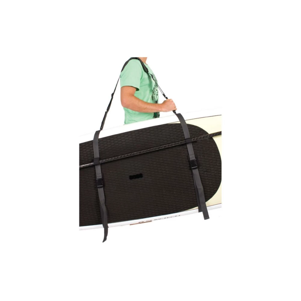 Der unkomplizierte Helfer zum Tragen deines SUP. Erleichtert den Weg zum Spot enorm, da das Gewicht easy auf der Schulter verteilt wird. Ist das Board dann am richtigen Spot, kann das Teil zu einer Tasche umfunktioniert werden und es können ganz easy Sachen verstaut werden. Die Tasche lässt sich dann bequem mit einem Gurt um die Hüften fixieren.