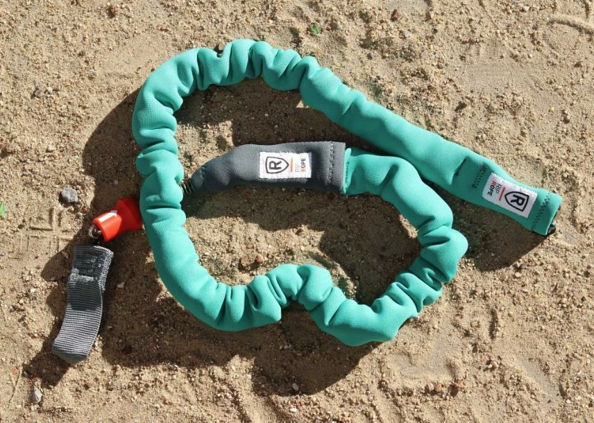 Der Karabiner ist standardmäßig von der Neoprenhülle ummantelt, so dass sich keine Leine im Karabiner verfangen kann.