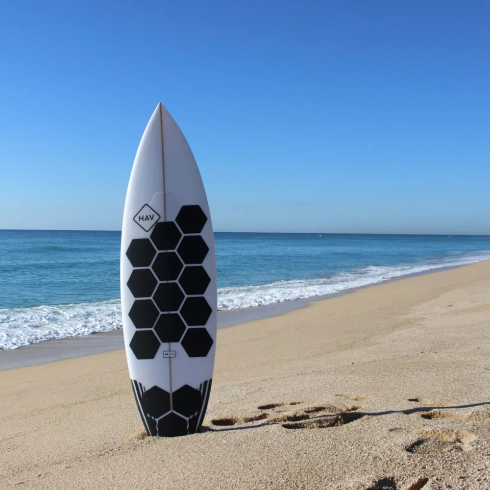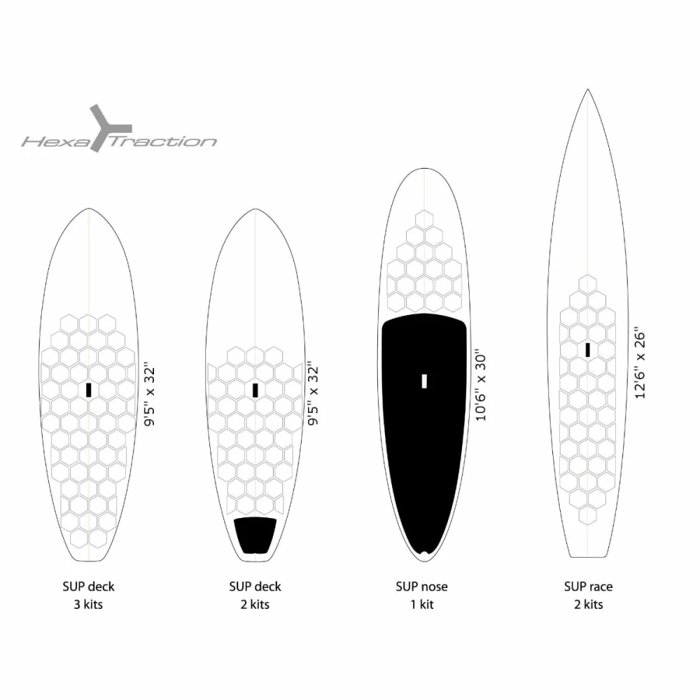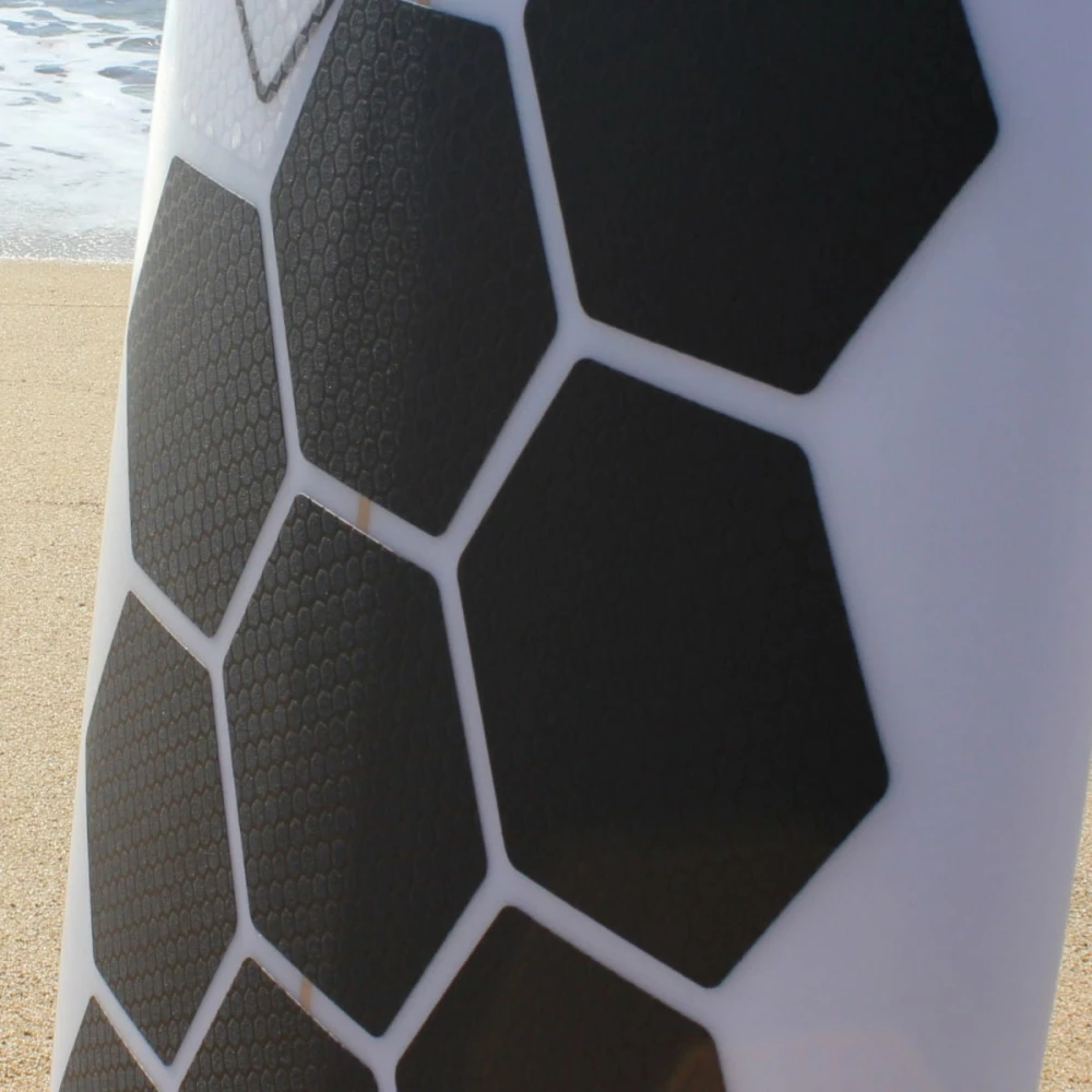 Alle wollen sie, wir haben sie: die neuen HexaTraction Grip Pads. Im Gegensatz zu herkömmlichem Surfwax, das immer neu aufgetragen werden muss, werden die Pads einmal verklebt und bleiben dann ganz einfach auf dem Board – ganz ohne Sauerei oder Rückstände. Gleichzeitig schonen sie dadurch die Umwelt und schützen das Board vor UV-Strahlung.
