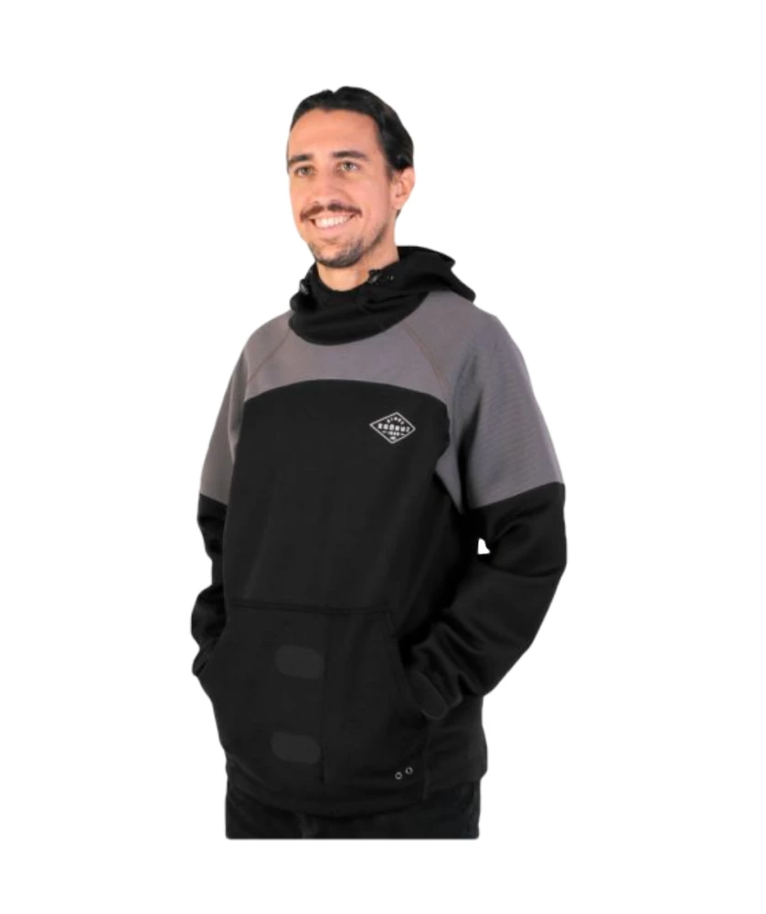 Soöruz baut mit dem Outside wirklich einen tollen Neohoodie. Mit einer Zugkordel kannst du den Hoodie unten zuziehen. Ebenfalls besitzt er an den Ärmeln Klettmanschetten. An der Vorderseite hast du zwei verstärkte Hakenlöcher für dein Trapez.